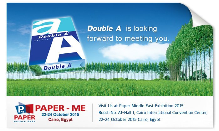 CAIRO, Egypt, 14 October 2015 – Double A is set to exhibit its range of premium quality paper at the Paper Middle East, the 7th International Exhibition for Paper, Board, Tissue, Printing and Packaging Industry. The event is taking place between 22-24 October 2015 at the Cairo International Convention and Exhibition Center (CICC).