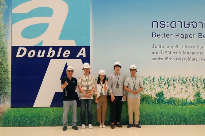 Double A Senior Executive VP, Mr.Thirawit Leetavorn (leftmost) welcomed the delegation of Korea Forestry Service to visit Double A’s state-of-the-art paper production process and Paper From KHAN-NA model. Korea Forestry Service witnessed how Paper from KHAN-NA (sustainable fiber source from trees grown along unused land between rice paddies) positively impacts farmers and communities across Thailand to earn supplementary income and helps protect the environment through carbon dioxide absorption.